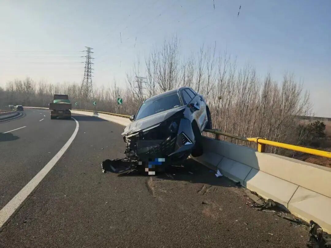 2026年1月1日下午两点左右,山东省公安厅交通管理总队直属高速二支队黄岛大队接到报警称,一辆小型轿车行驶至徐村枢纽时,进入弯道时车速过快撞击边侧护栏,车辆和护栏严重受损,所幸未造成人员伤亡。