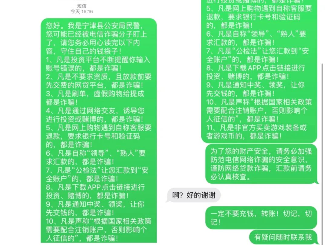 感受到电话中敷衍的语气,担心群众大意被骗,民警拨打电话无果后,向张先生发送短信,提醒他切莫大意。