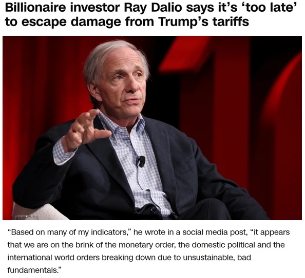 从全球经济秩序层面分析,美国桥水投资公司创始人瑞·达利欧日前在社交媒体上发表长文称,加征关税造成的伤害不会很快结束,现有秩序正加速瓦解,以美国为中心的全球经济秩序正在结束。