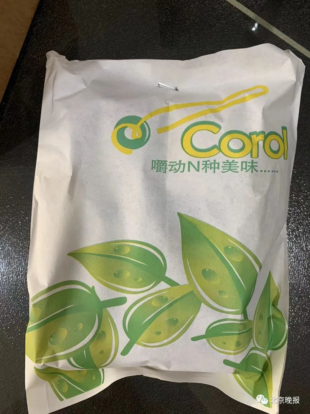 打开煎饼的包装纸袋,记者看到,除了外包装被钉上订书钉外,每个煎饼外包裹的食品袋也用订书钉再次封死,实行“双保险”。