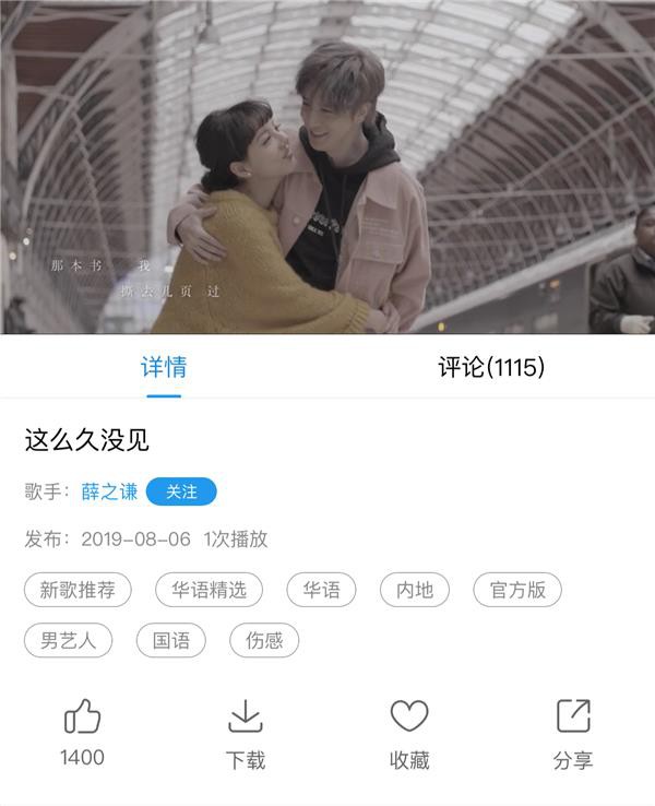 除了单曲,《这么久没见》的MV也在酷狗同步释出,一发布就斩获过千评论,热度十足。喜悦、依赖、冷漠、怀念,处处的情绪都拿捏到位,薛之谦简直是被唱歌耽误的演员。