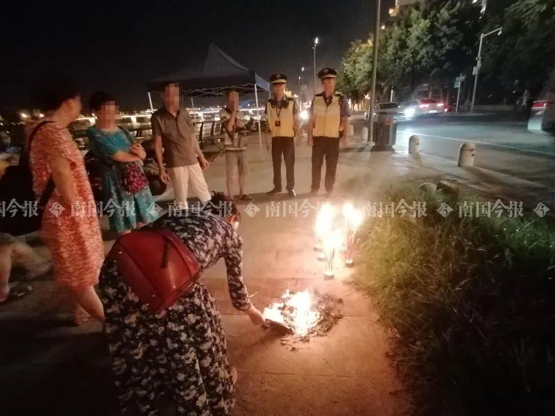随后,城中城管执法局执法人员接报赶到滨江西路,对市民焚香烧纸的行为进行劝阻。