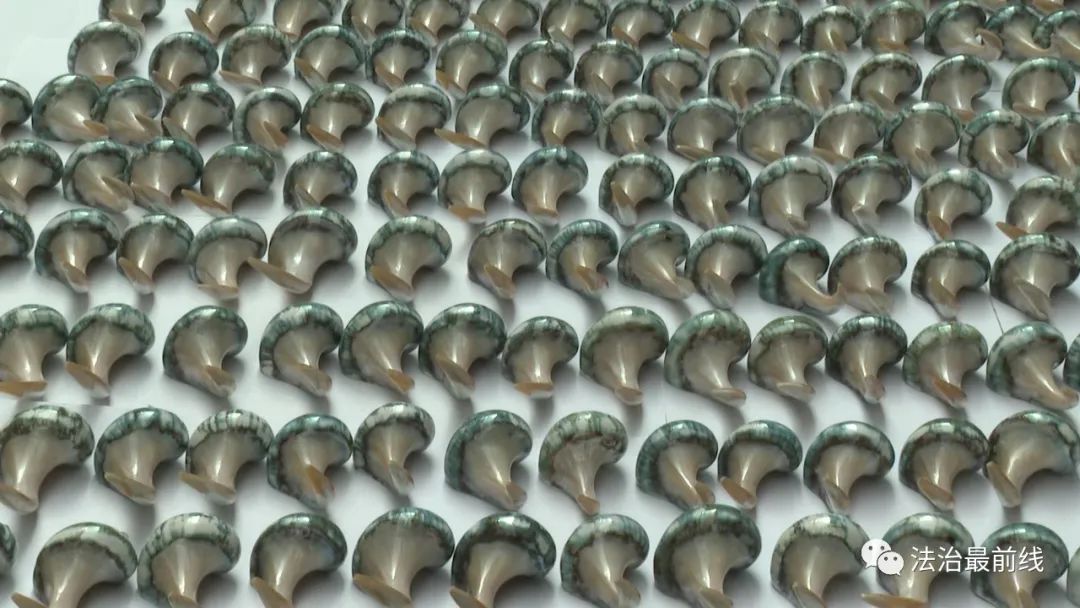 友谊关海关监管一科查验关员李佳赛: 我们开箱查验发现螺形勺子290个,螺形工艺品702个,由于该批货物中螺形工艺品、螺形勺子的勺柄部分,带有花纹并有放射状纹理,疑似为贝壳或海螺制品 。