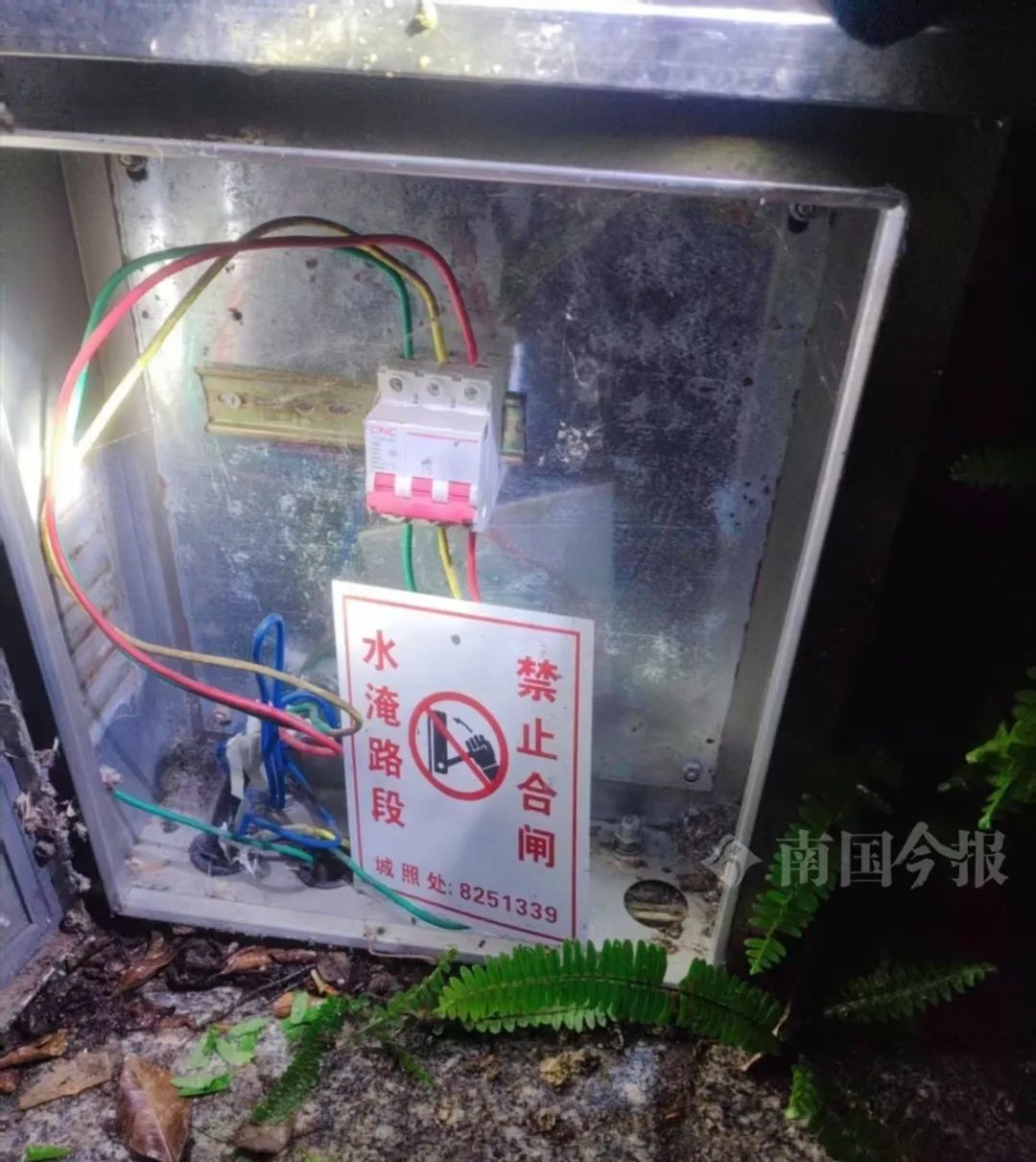 电表箱停电拉闸后,为了防止有人误开,电表箱内还挂了一块牌子“水淹路段 禁止合闸”。