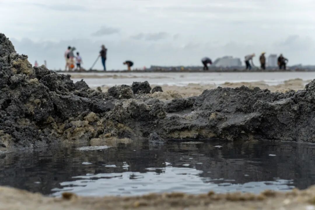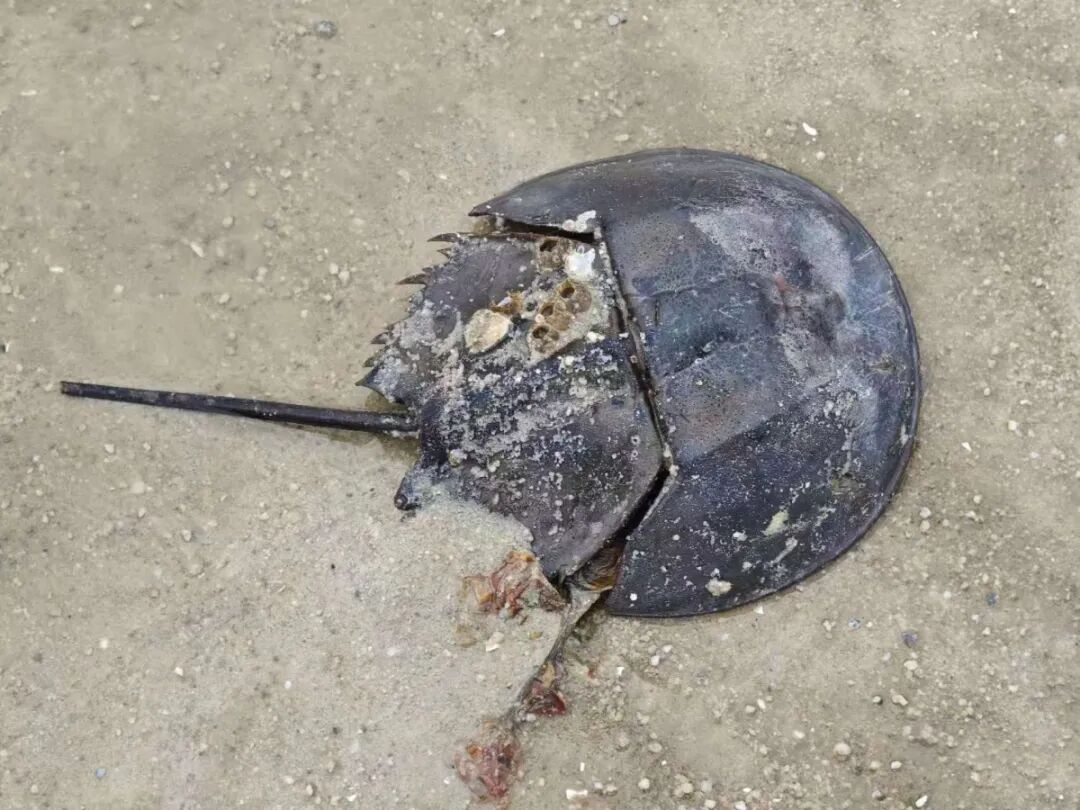 这重合背后,全是隐患:游客赶海时挖出来的坑、堆起来的土坡,会阻碍幼鲎的移动,影响它们活动;红树林之间的潮沟是幼鲎扎堆活动的地方,偏偏成了游客和摩托车穿梭的热门路线,摩托车一碾,幼鲎很可能直接丧命;还有些幼鲎躲在沙里,游客看不到,用工具挖的时候很容易把它们凿伤,误捕的情况也时有发生。