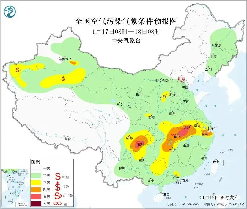 根据最新资料,17日下午偏北风1~2级,受日照条件改善、空气稳定性下降影响,PM2.5浓度有所下降,降低至轻度或中度污染水平;17日夜间转偏东或偏南风1~2级,受静风天气、本地污染源影响,预计PM2.5浓度重新上升,提升至中度或重度污染水平。