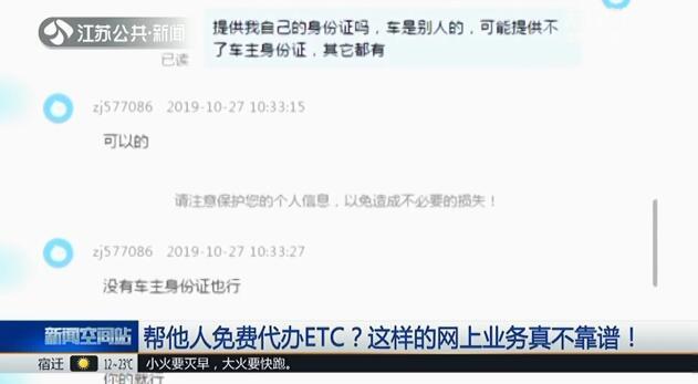 帮他人免费代办ETC?这样的网上业务真不靠谱