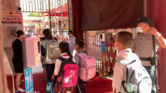 为守好校园安全的“第一道防线”,学校领导、值班教师、校医和安保人员早早到岗,引导学生间隔“一米线”,依次通过热成像测温通道,进入校园。各个环节有条不紊,开学复课秩序井然。