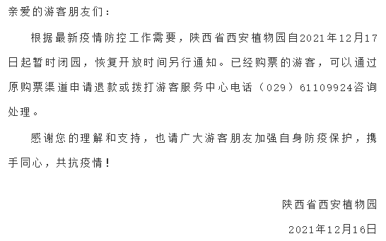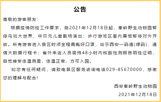 同时,接商洛市疫情防控指挥部通知,从2021年12月18日12:00起,西安城南客运站发往商洛地区:商州、镇安、柞水、洛南、商南、丹凤、山阳等班车全线停运,具体恢复时间另行通知,网上已在线购票的旅客请在线办理全额退票。