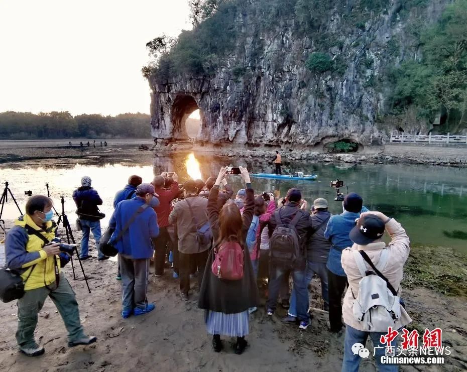 桂林著名景点象鼻山的“猫眼”奇观,引来众多市民和摄影爱好者前来观赏拍摄。唐梦宪 摄