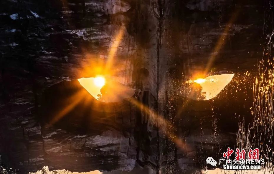 将拍摄到的象山水月洞照片剪裁后,逆时针旋转90度,酷似“猫眼”。 唐梦宪 摄