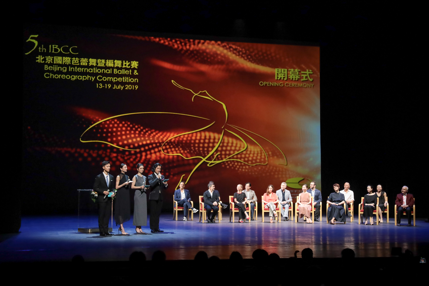 13日晚,在青年舞者、演员尹昉,中央芭蕾舞团首席舞者张剑,前英国伯明翰皇家芭蕾舞团首席舞者曹驰,旧金山芭蕾舞团首席舞者谭元元的主持下,第五届北京国际芭蕾舞暨编舞比赛在国家大剧院戏剧场正式拉开帷幕。在当晚的开幕式演出中,中央芭蕾舞团首席舞者张剑与独舞演员武思聪带来了舞团保留作品《昨日永恒》,以极富张力的肢体诠释了富有当代创思的编排理念;青年舞者、演员尹昉与荷兰舞蹈剧场一团舞者吴孟珂,演绎了为本次比赛开幕式特别编排的《混沌》,让现场观众领略到了中国舞坛青年舞者的蓬勃朝气;而旧金山芭蕾舞团首席舞者谭元元则与独舞演员史蒂文·摩尔斯共同演绎了The Infinite Ocean(《无尽的海洋》),以轻盈飘逸的舞姿一展精湛舞技。