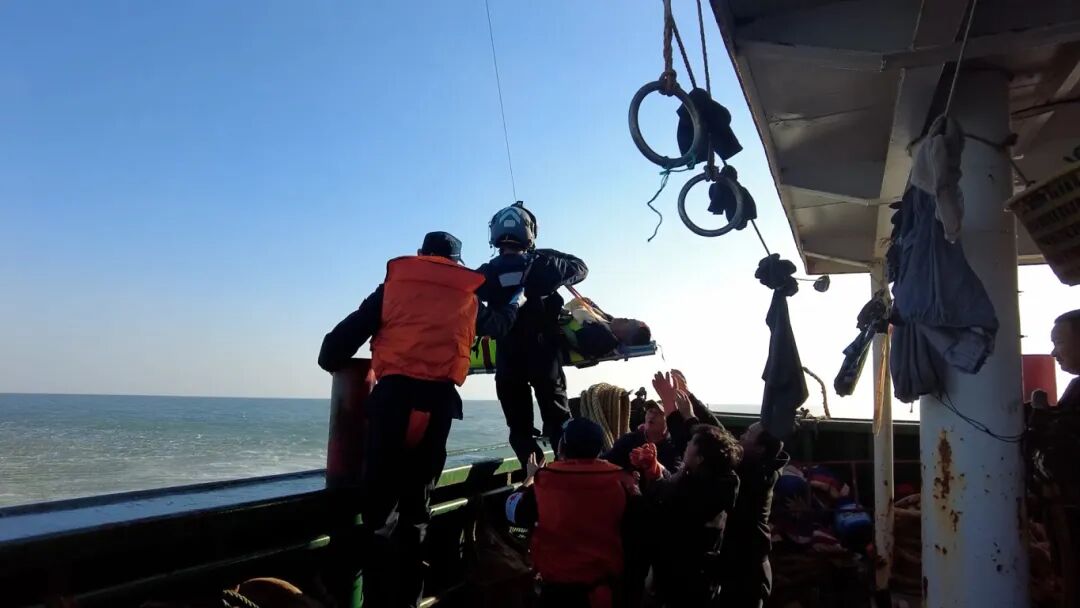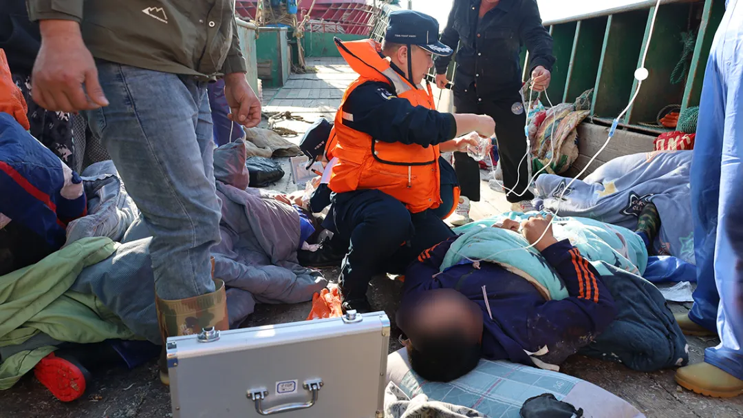 12月7日11时许,中国海警直属第一局接警称,江苏某海域一艘作业渔船突发意外,2名渔民被缆绳击中头部,当场重伤昏迷,生命危在旦夕。