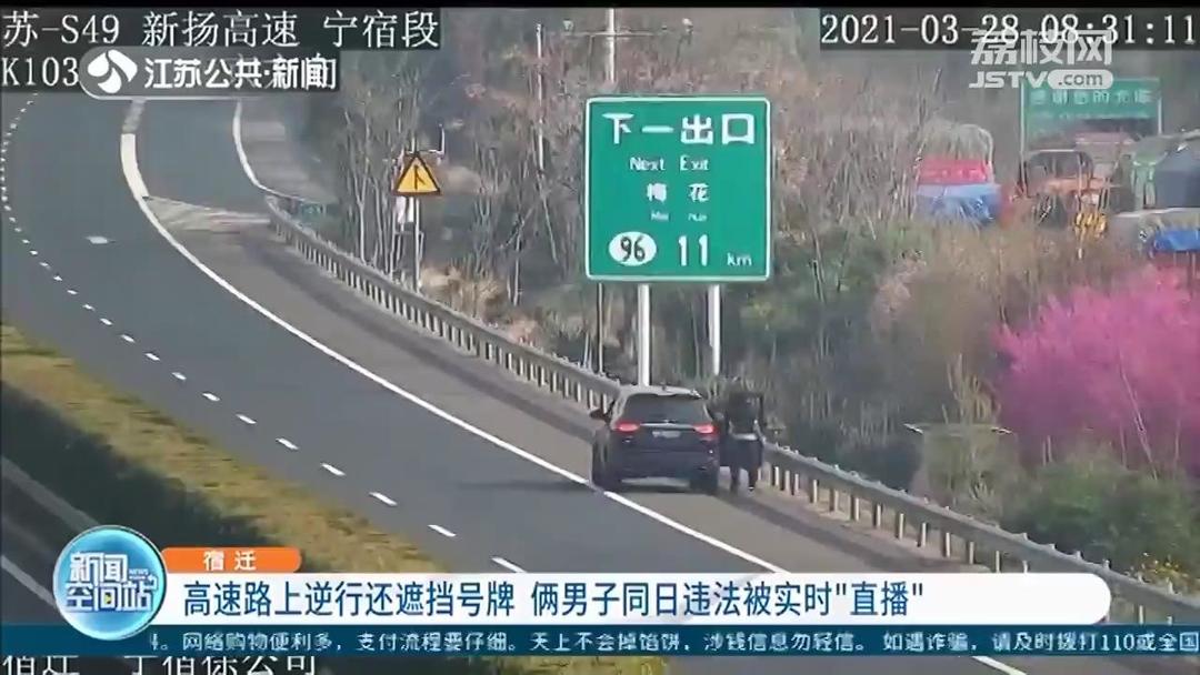 前两天,在宿迁辖区一条高速公路上,一天先后上演了两起遮挡号牌和逆向行驶的违章行为,都被沿途监控给拍了个正着。