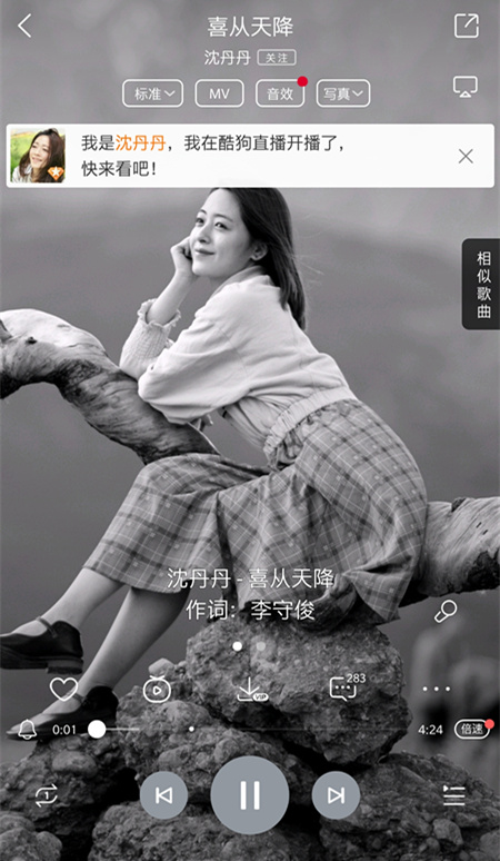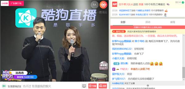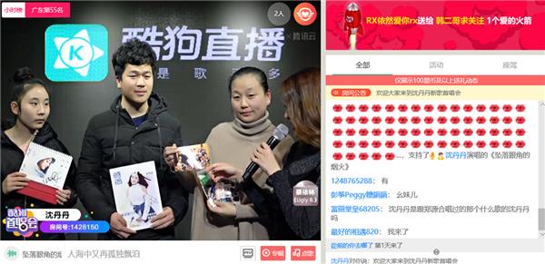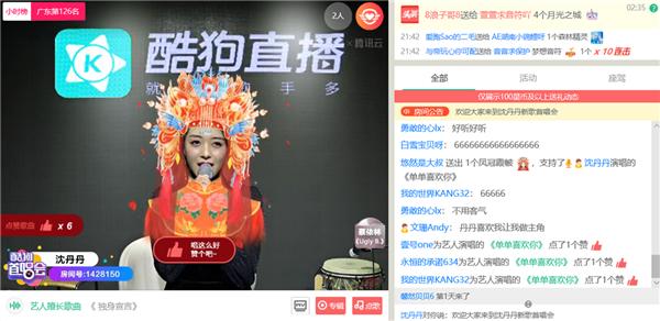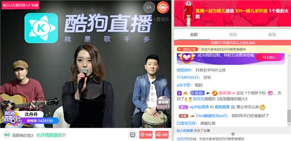 当晚,陆续有观众观众通过酷狗音乐的提示一键进入直播间和丹丹互动。自从酷狗音乐和酷狗直播互通后,歌迷在听歌时就能收到提示,轻松进入直播间,不怕错过和爱豆交流的机会!而歌手多出一个宣传渠道,人气涨得更快了,这种双赢的操作,要给酷狗工作人员加鸡腿!
