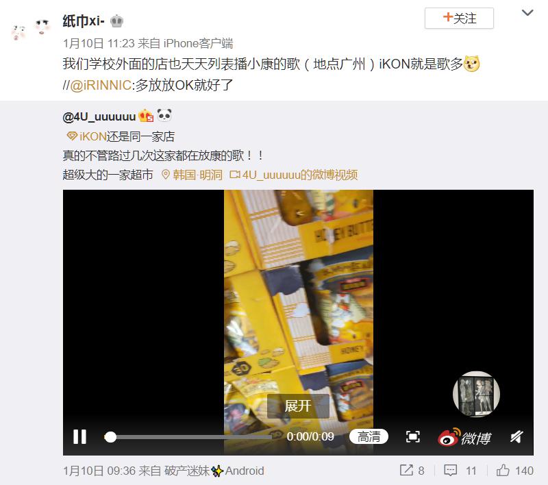不少粉丝纷纷合影并表示,无论韩国还是中国,随便路过超市、学校小店,都是循环iKON的歌曲,“iKON就是歌多,影响力就是高!”