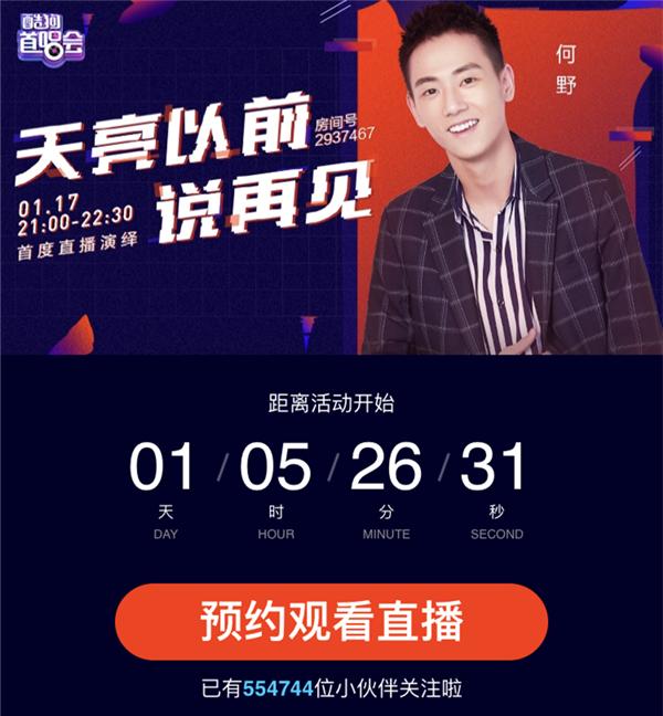在酷狗首唱会上,新生代雅痞歌手何野将首次带来《天亮以前说再见》的live版本,想想都让人超期待!演唱之余,何野会不会跟观众分享歌曲创作背后的趣事呢?只发表过一首作品的何野,2019年又有什么样的发片计划呢?会不会在酷狗直播公开还未上线的新歌呢?想知道答案,千万别错过首唱会的直播!