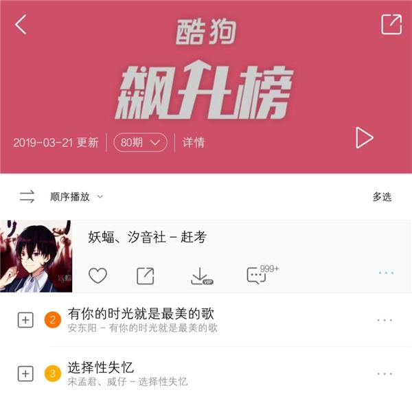 《赶考》在酷狗音乐独家上线不到一个小时,评论量就刷爆999+,次日更直接力压一众流行歌手,强势登陆酷狗飙升榜TOP1 !
