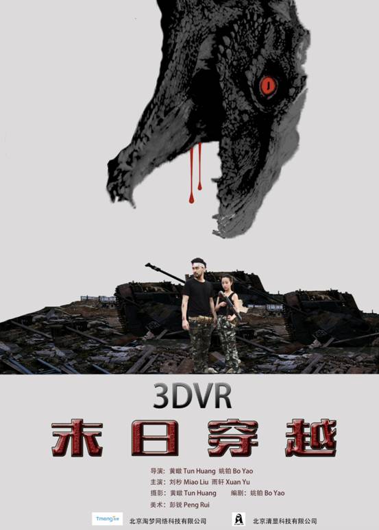 2016年拍摄的电影《末日穿越》,是由北京清显科技有限公司出品,淘梦网发行,黄暾和姚铂执导,刘秒、葛雨轩等联袂主演的3D-VR科幻故事片。影片将于2018年4月上映。