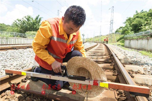 在巡检中,有的巡检员在经过感觉有问题的铁轨时,俯下身来依靠接近 50°C 高温的铁轨," 每股铁轨左右的高度差不能超出范围,超出范围了就需要改铁轨 "。据悉,不同的线路的铁轨的高度差不相同,例如柳南客专 7 月 1 日起提速 250 公里 / 时后,左右铁轨宽度是 1435 毫米,误差只能有 0.5 毫米,提速前由专车巡检,确保动车行驶安全。